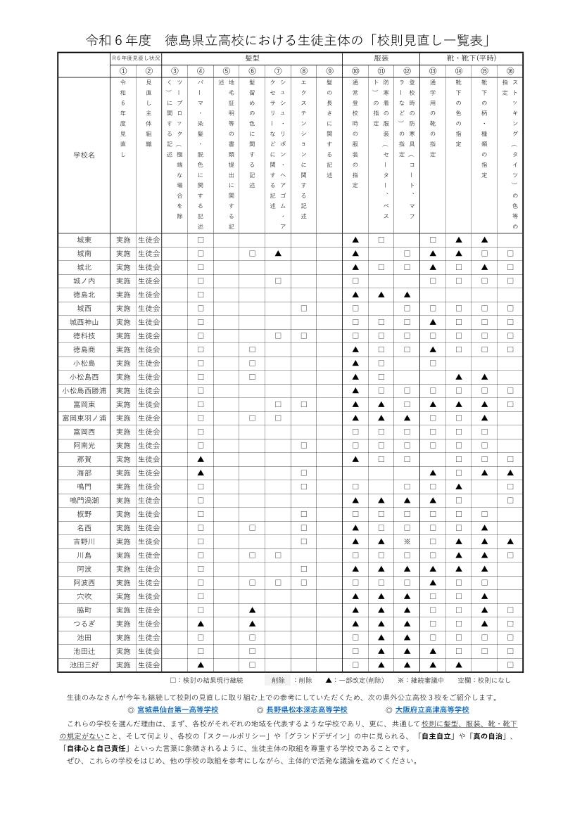 【最新】(資料)令和6年度徳島県立高校における生徒主体の「校則見直し一覧表」(pdf)548KB